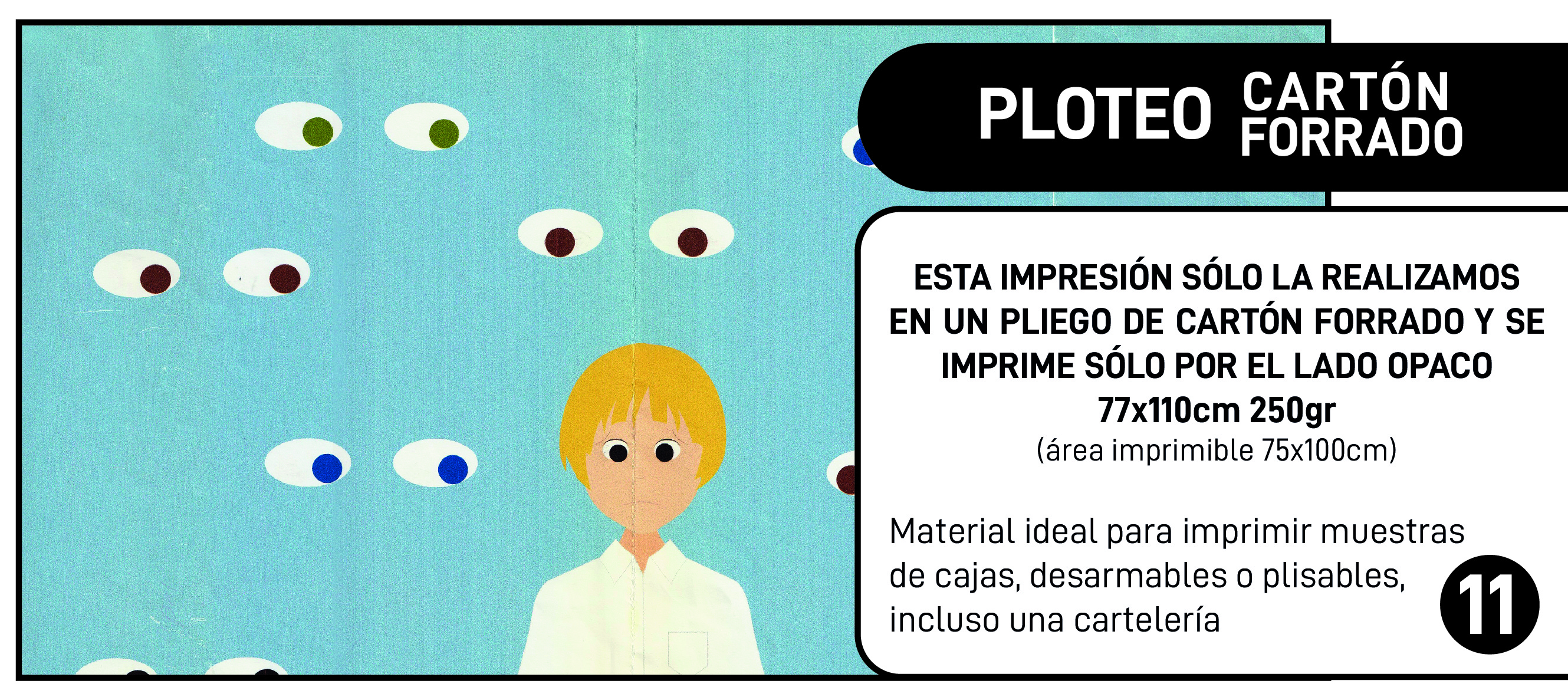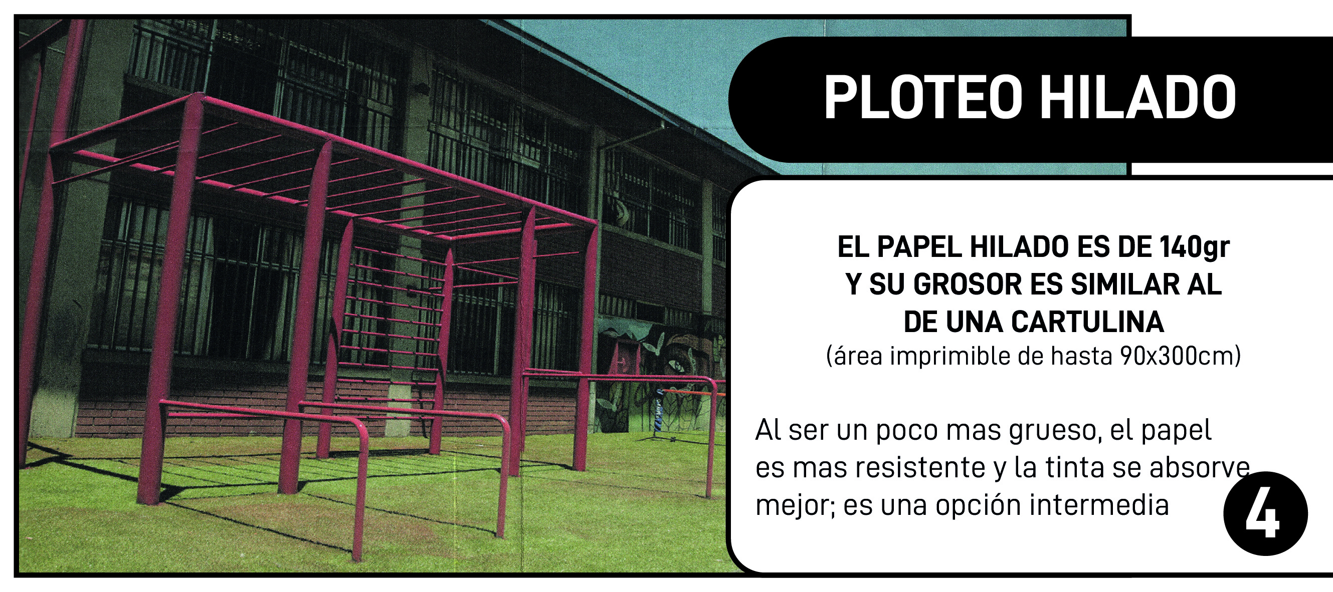 La palabra PLOTEO se utiliza para referirse a la impresión de algo que es mas grande que una hoja prefabricada, es decir, cuando se necesita imprimir algo más grande que una hoja carta, oficio y doble carta, pasa a ser ploteo. También usamos palabras claves, como cuando se requiere imprimir en TAMAÑO CARTULINA (55x77cm) o TAMAÑO PAPEL KRAFT / PAPELOGRAFO (77x110cm) también es considerado PLOTEO